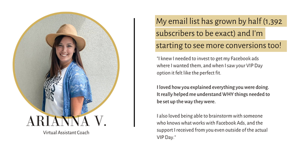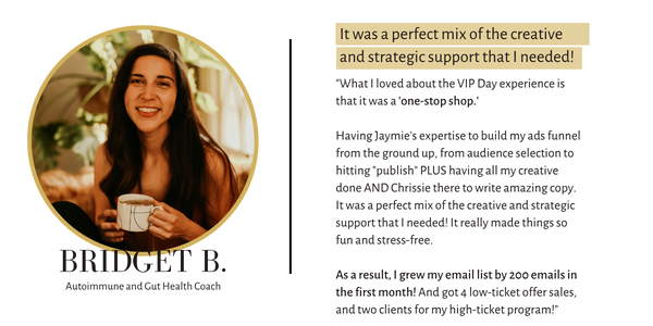 I created this personalized VIP Day because I’m dedicated to building out a strategy for you that brings that massive growth and ROI you crave. And Facebook and Instagram ads are the fastest way for you to get there!
