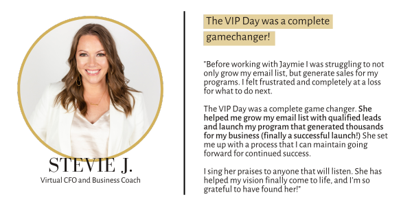 → Up to 5 hours of dedicated support on your VIP Day… so we can accomplish everything from crafting a customized strategy to writing copy that converts to getting it all up and running!