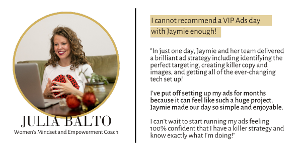 I didn't feel like my business was ready for ads and I also didn't have the time to learn it myself. That's why I'm so grateful for Jaymie.
